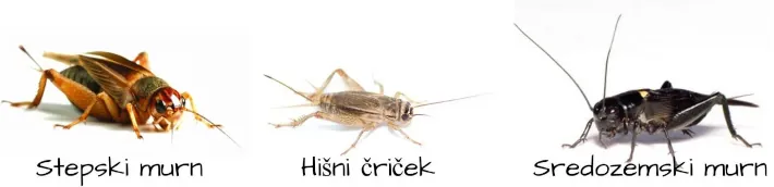 • Stepski murni (Gryllus assimilis) – so veliko bolj tišji kot pa hišni črički in sredozemski murni, zato so še toliko bolj popularni pri lastnikih eksotičnih živali.