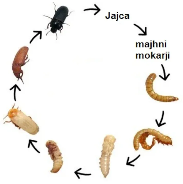 Mokarji so v bistvu ličinke mokarjevega hrošča (Tenebrio Molitor) iz družine črnih hroščev (Tenebrionidae). Izraz “mokar” uporabljamo v pogovornem dialektu. Ličinke mokarjev so podobne ličinkam velikega črnega hrošča (Zophobas Morio), ki so večje od mokarjev – podobne so pa tudi ličinkam sijočemu črnemu hroščku (Alphitobius diaperinus), ki pa so manjši.