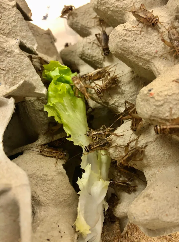 Ker so črički in nasploh vsi nevretenčarji zelo občutljivi na pesticide, jim ponujamo samo neškropljeno hrano, drugače bodo prehitro poginili.